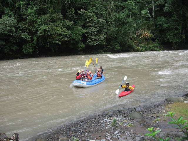 Our rafting guide was amazing! He showed us how to wedge your feet in to stay in the raft, and maneuver the paddles. It was a bit gimmicky, but after our obstacles we would all raise the paddles in high five fashion and yell "La Pura Vida." The Pure Life.